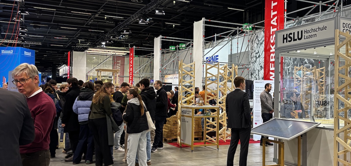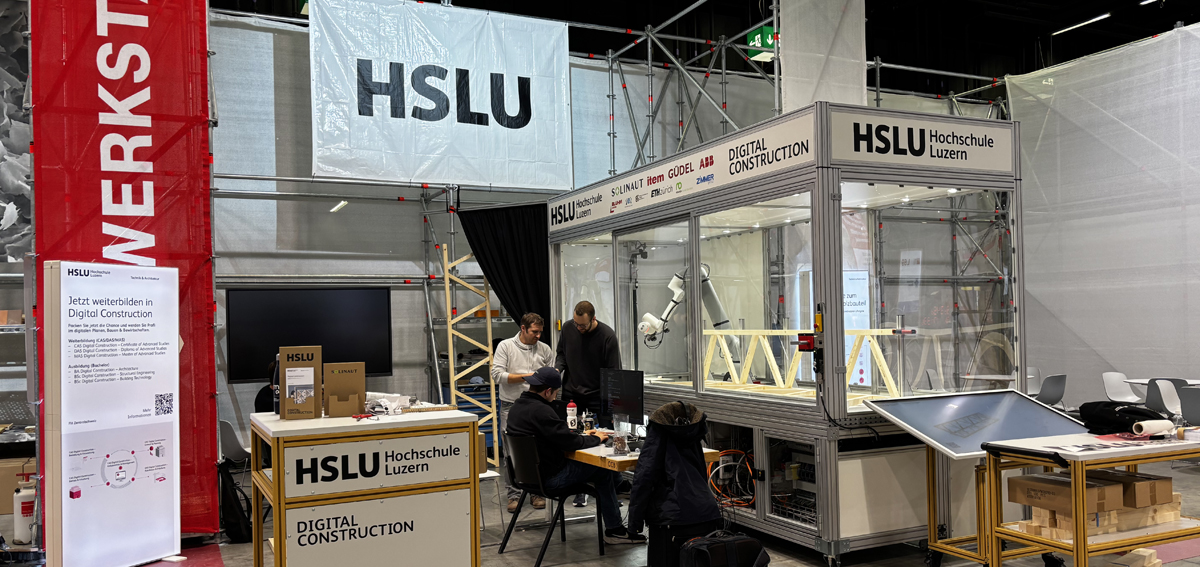Ein besonderes Highlight des Swissbau Lab war die Werkstatt. Hier zeigten Impact Acoustic, die Hochschule Luzern, TS3, ERNE und die FHNW ihre neuesten Materialien und Systeme – in Live-Demos und zum selbst ausprobieren! Vom beeindruckenden Roboterarm der Hochschule Luzern, über akustische Kreislaufmaterialien und Holzbauverfahren bis hin zum Lehmbau erlebten Besucherinnen und Besucher in der Werkstatt hautnah, was in der Praxis heute möglich ist und welche Potenziale sich daraus für die Zukunft ergeben.