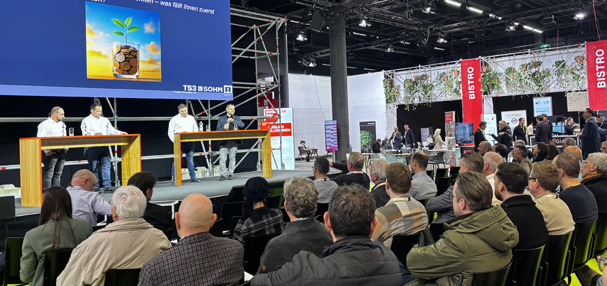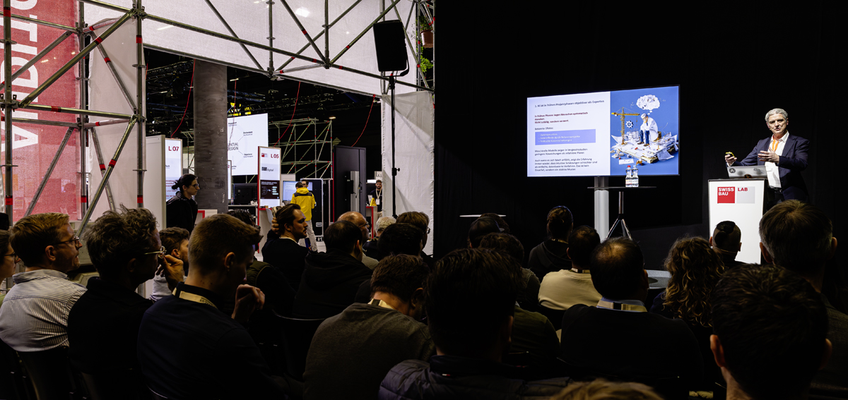 Ein neues Format im Herzen des Swissbau Lab bot die Main Stage. Hier wurden in täglichen Themenanlässen aktuelle Innovationen präsentiert und mit führenden Expertinnen und Experten aus der Branche diskutiert. Themen waren unter anderem der Wechsel vom Massiv- zum Modulbau, die Prozesse und Abläufe rund um die Wiederverwendung von Baumaterialien und der Nutzen digitaler Intelligenz. In den Veranstaltungen beleuchteten die Referentinnen und Referenten in ihren Keynotes unterschiedliche Blickpunkte und diskutierten diese im Anschluss in einer gemeinsamen Podiumsdiskussion.
