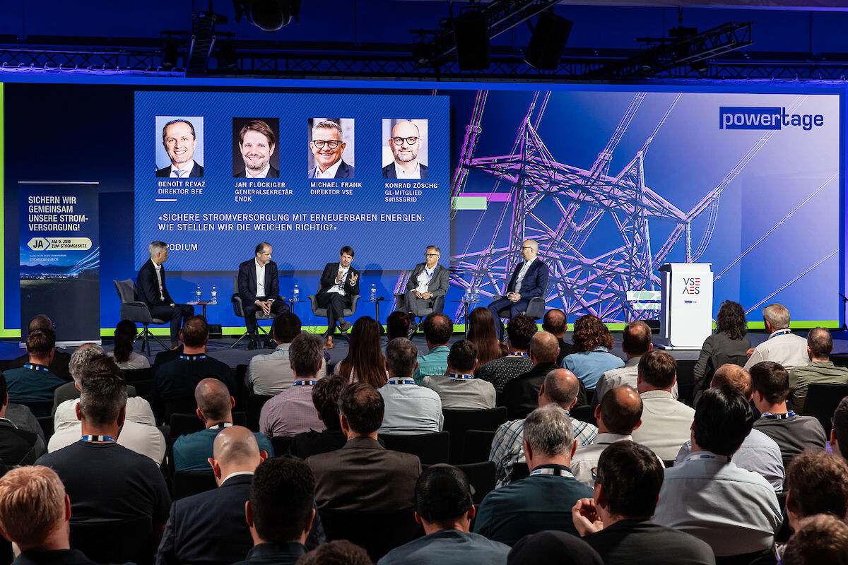 Im Podium, ergänzt durch Nadine Brauchli (VSE), steht die zentrale Frage im Fokus: Wie gelingt eine Stromversorgung, die nachhaltig, bezahlbar und resilient ist?