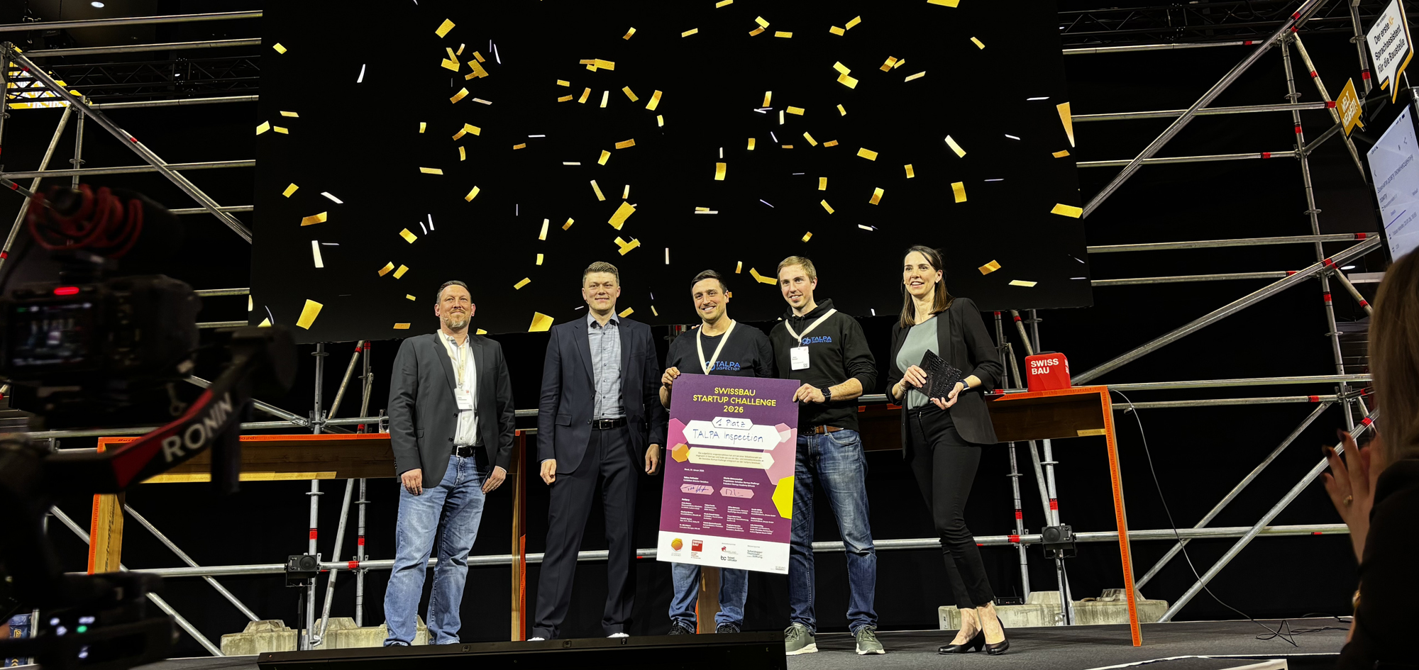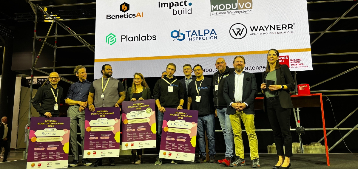 Am Freitag, dem 23. Januar 2026, pitchten die sechs Finalist:innen Aconitum Swiss Sárl, Benetics AI, Impact.build, Moduvo, Planlabs und TALPA-Inspection auf der Main Stage des Swissbau Lab und stellten dort dem Messepublikum ihre Businessidee vor. Die Innovationen reichten von modularen Wandsystemen und nachhaltigen Akustikpanelen über 3D-Druckverfahren zur Vorfertigung von Bauelementen bis hin zu Korrosionssensoren für Drohnen und Software zur Digitalisierung von Rapporten mittels künstlicher Intelligenz.